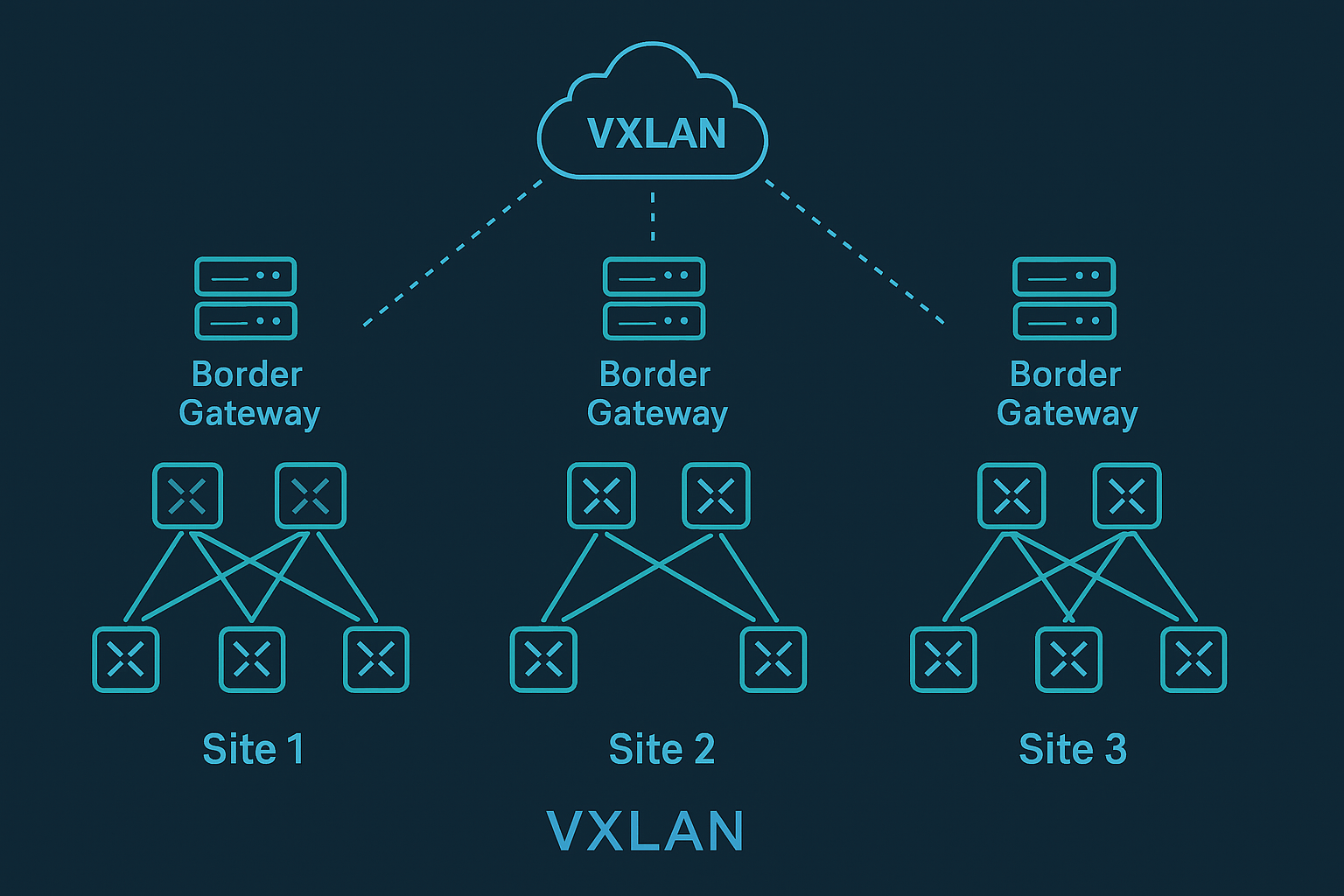 Notre expertise couvre la conception de fabric VXLAN-EVPN, la haute disponibilité, le routage BGP, le cloisonnement et les interconnexions critiques entre sites ou vers le cloud.